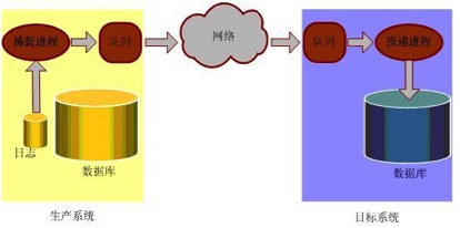 Oracle GoldenGate 软件是一种基于 log(日志)的结构化数据复制软件,它 通过解析源数据库在线 log 或归档 log 获得数据的增、删、改变化,再将这些变 化应用到目标数据库,实现源数据库与目标数据库同步、双活。Oracle GoldenGate 软件可以在异构的 IT 基础结构(包括几乎所有常用操作系统平台 和数据库平台)之间实现大量数据亚秒级的实时复制,其复制过程简图如下: